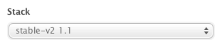 Note: For clarity, since we now have 2 Gentoo stacks, we refer to this stack as the Engine Yard Gentoo 12.11 stack. You can access it by using the Stack select field in the Environment UI: