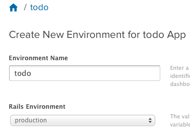 - Click Create Environment