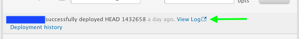 - After the deploy is completed, verify that the deploy is successful. You should see a similar message to the image below. If you do not see a successful deploy message, deploy logs is available on the environment dashboard. Click view log.