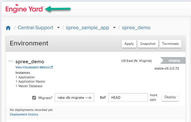 Tip: If you want to refresh to double-check on progress, click Engine Yard icon on the top left of the window rather than refreshing your browser: