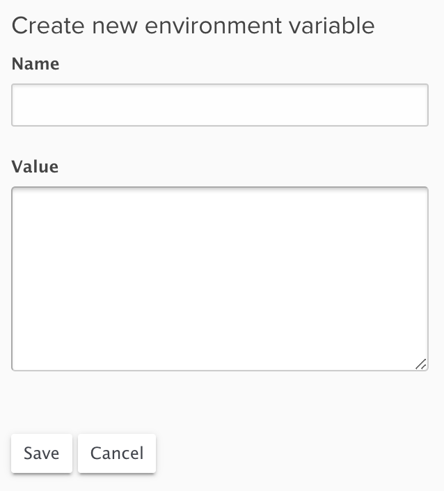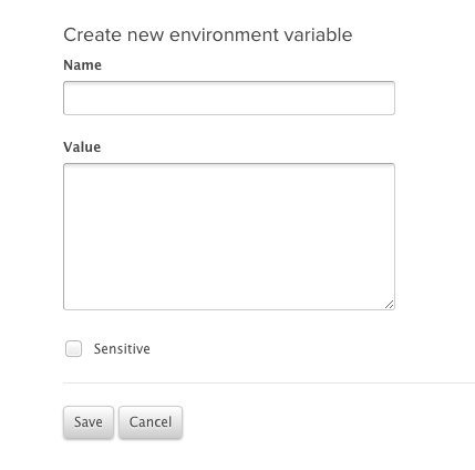 The Environment Variables page will list any existing variables, and new ones can be added using the New Variable button. Enter the Name and Value. For variables that are for Chef use only you can prevent them being passed to the application by prefixing the variable name with EY_.