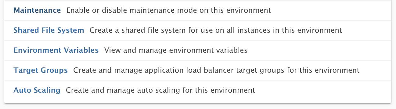 • Environment variables are put in place by Chef scripts. Hence, every time one is added/removed/modified an Apply is needed on the environment.