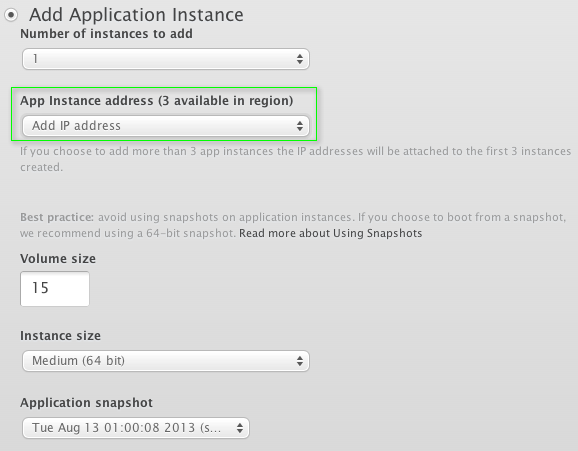 This feature allows you to assign an elastic IP address to an app slave instance directly from the dashboard. As an example, you can use this to create an IP whitelist for communicating with a gateway. You can also use it to maintain IP continuity if your app master goes down and the slave gets promoted.