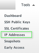 On the dashboard, click Tools > IP Addresses on the toolbar.