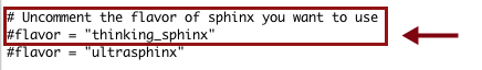 Make the following edits to the sphinx default recipe in