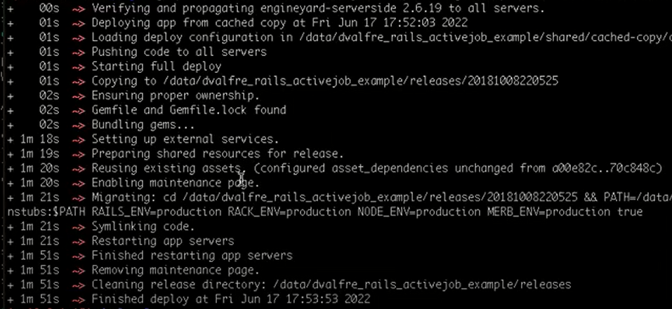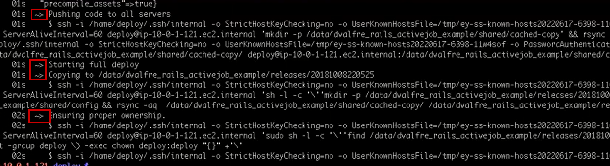 • You can also use the grep command to only show all stages. grep '~>' [app_name]-integrate-ip-[ip].ec2.internal.log