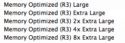 Select the appropriate Memory Optimized R3 instance size in the list.